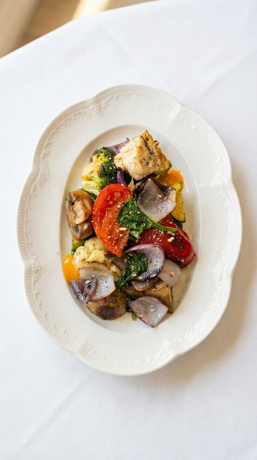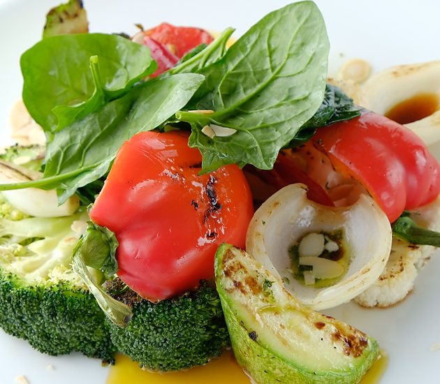 Обжаренные овощи на гриле с хумусом
